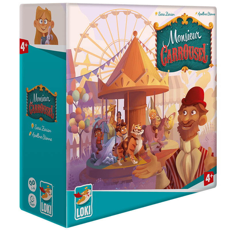 L’heure est venue d’embarquer sur le manège pour un voyage mémorable qui viendra chatouiller votre mémoire… ainsi que votre chance ! Monsieur Carrousel vous accueille au coeur de la Fête Foraine pour un jeu coopératif dans lequel les joueurs doivent trouver une place sur le manège pour chaque enfant. Choisiront-ils le cheval de bois, le dauphin ou le petit avion ?