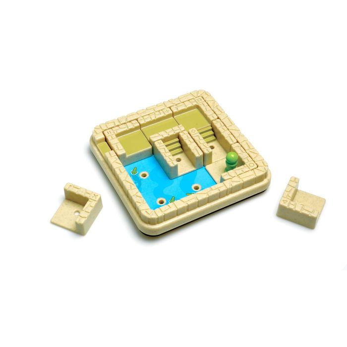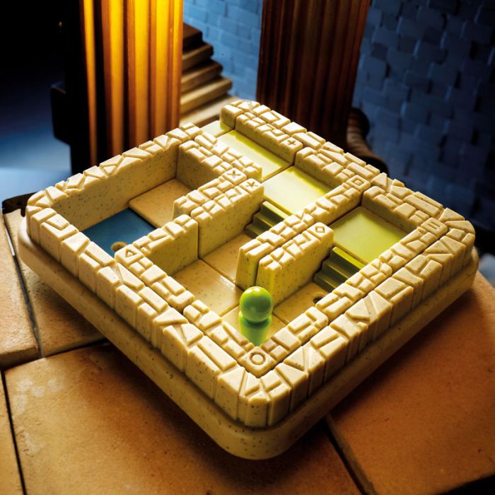 Puis, faites coulisser une ou plusieurs pièces dans le plan de jeu pour permettre à votre pion de se déplacer à son tour jusqu’à un point d’arrêt possible. Répétez les déplacements alternatifs jusqu’à atteindre la seule sortie possible.