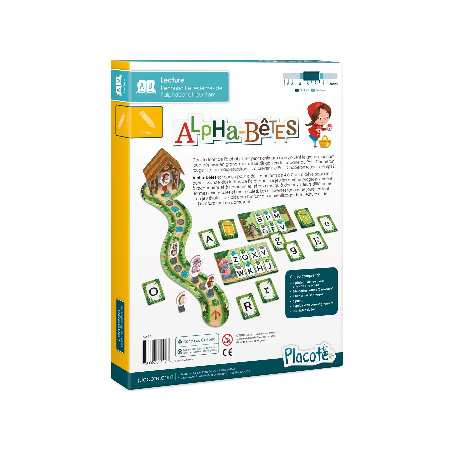 Alpha-bêtes est conçu pour aider les enfants de 4 à 7 ans à développer leur connaissance des lettres de l’alphabet. Le jeu les amène progressivement à reconnaitre et à nommer les lettres ainsi qu’à découvrir leurs différentes formes (minuscules et majuscules). Les quatre personnages, les deux niveaux de jeu et les différentes façons de jouer en font un jeu évolutif qui prépare l’enfant à l’apprentissage de la lecture et de l’écriture tout en s’amusant.