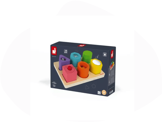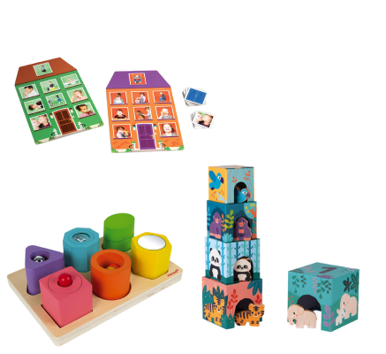 L’enfant apprend à manipuler et orienter des formes pour les insérer correctement dans des ouvertures adaptées.