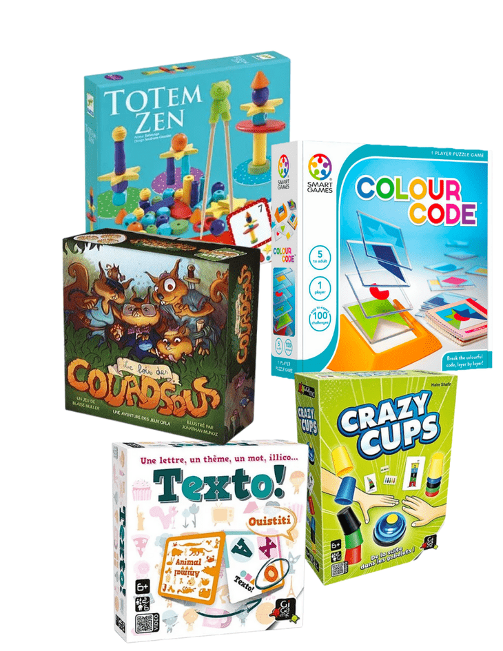Cette boîte éducative a été spécialement conçue pour accompagner les enfants de 7 à 8 ans dans le développement de compétences variées. Elle contient cinq jeux soigneusement sélectionnés pour renforcer des aptitudes spécifiques, telles que la mémoire, le langage, les compétences sociales, les fonctions exécutives ainsi que les mathématiques et la logique. Un guide élaboré par des experts du développement est également inclus, offrant des outils concrets pour enrichir les interactions parent-enfant et transformer chaque moment de jeu en une expérience d’apprentissage stimulante.