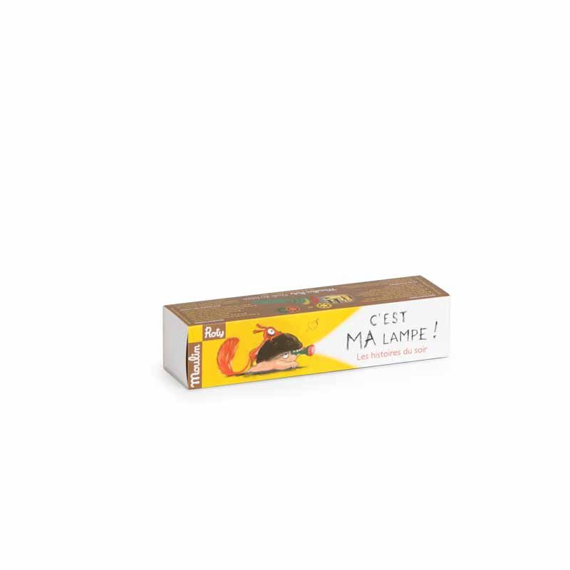 Lampe torche de poche où chacun des 3 disques projetés sur le mur raconte les aventures de l’écureuil, héros de l’école des loisirs, pour imaginer de belles histoires avant de s’endormir le soir. On éteint la lumière pour que la magie opère !