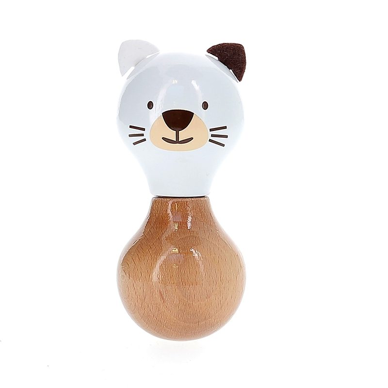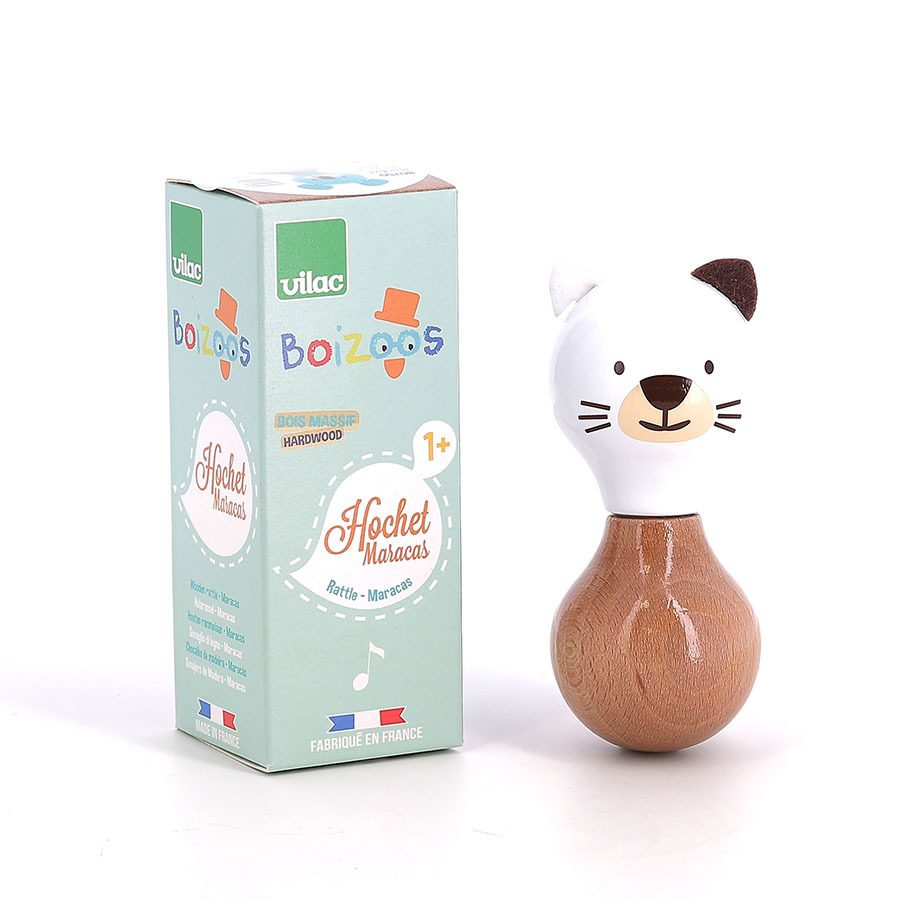 Décliné en boite à musique, en voiture et en parapluie, ce hochet en bois laqué fait partie d’une collection d’animaux imaginés et fabriqués dans notre atelier du Jura en France.
