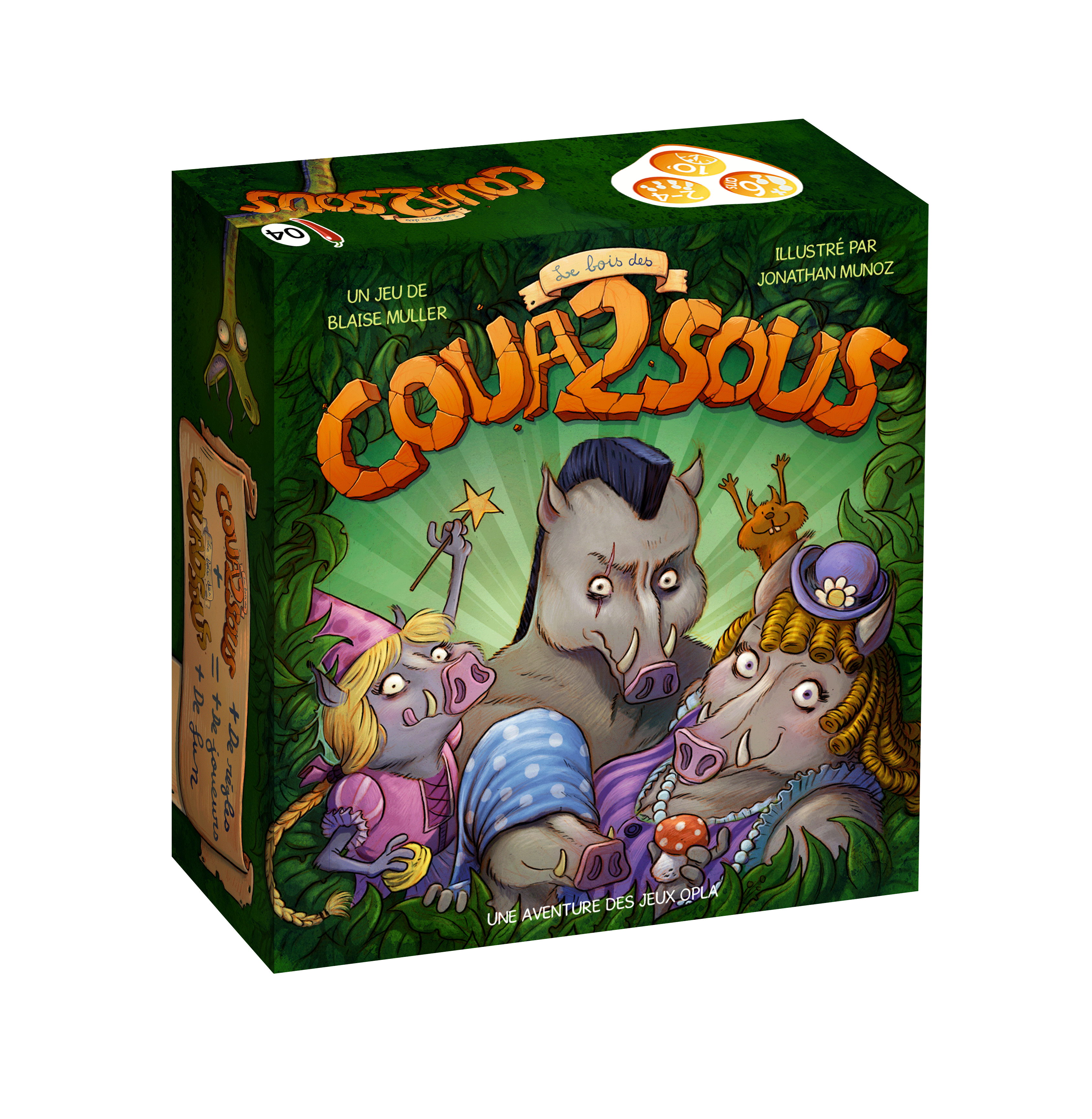 Le Bois des Coua2sous propose la même mécanique de jeu que son grand frère Le Bois des Couadsous, dans un nouveau décor et avec de nouveaux personnages : les Sangliers sont arrivés ! Ainsi, ceux qui n’ont pas le jeu peuvent choisir lequel ils préfèrent, et… Ceux qui ont les deux jeux auront de nouvelles et riches perspectives de jeu !