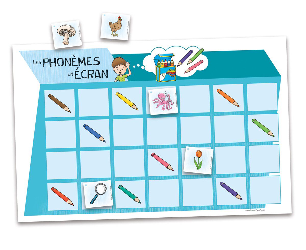 L’enfant place une à une les cartes-images sur sa planche en les décrivant avec suffisamment de précisions pour que l’autre joueur puisse réussir à placer les mêmes cartes au même endroit sur sa planche.